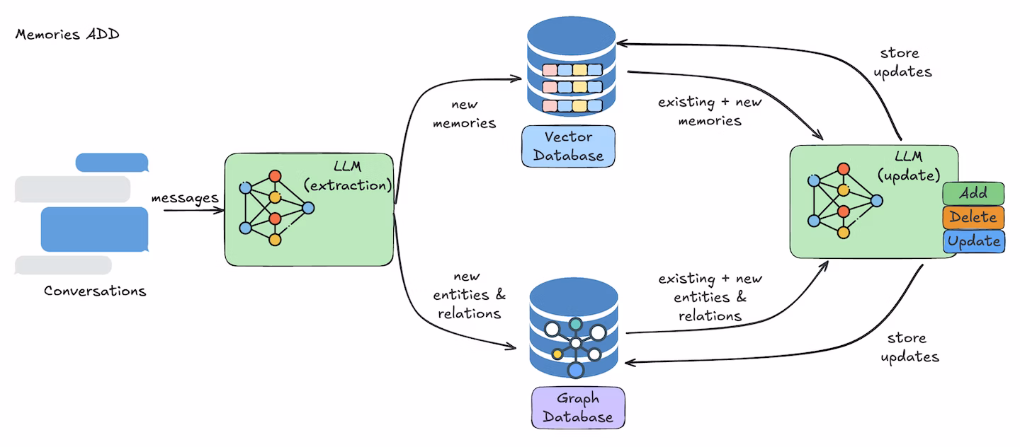 Mem0 sử dụng LLM (GPT, Claude, Groq, Ollama, v.v.) để: