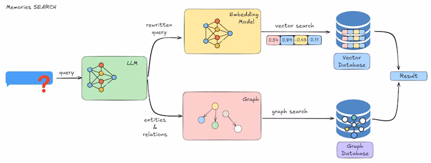 - Query Processing (Xử lý truy vấn): LLM hỗ trợ phân tích truy vấn người dùng, kết hợp với Vector Search (dựa trên cosine similarity) để tìm các memory liên quan về ngữ nghĩa.